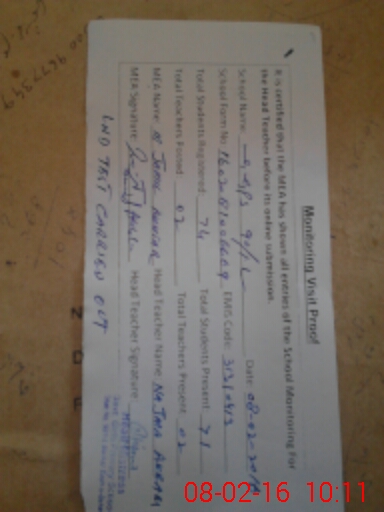 | Attendance Register | Head Teacher | MEA with School | Visit Proof |