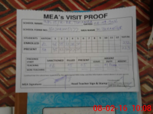 | EMIS Code: 36430239 | Name of School: GPS 15/8-BR, TULAMBA | |||