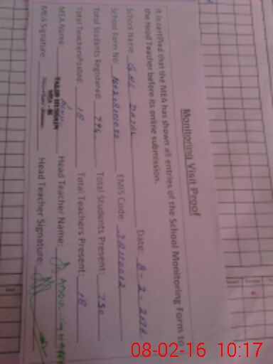 | Certified that this School was Inspected by the Undersigned MEA/DMO Today and the Information Stated Above is as Per Record. | |||||