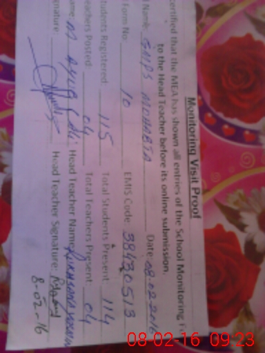 | Certified that this School was Inspected by the Undersigned MEA/DMO Today and the Information Stated Above is as Per Record. | |||||