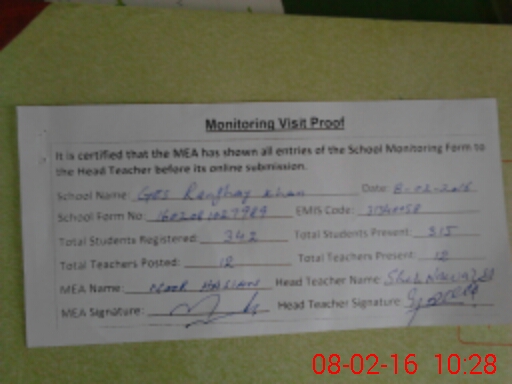| EMIS Code: 31340058 | Name of School: GHS RANJHAY KHAN | |||