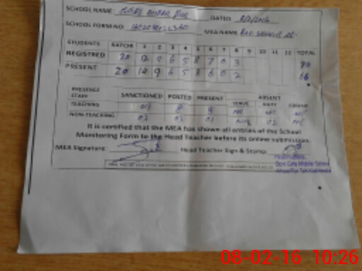 | Attendance Register | Head Teacher | MEA with School | Visit Proof |