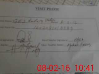 | Attendance Register | Head Teacher | MEA with School | Visit Proof |