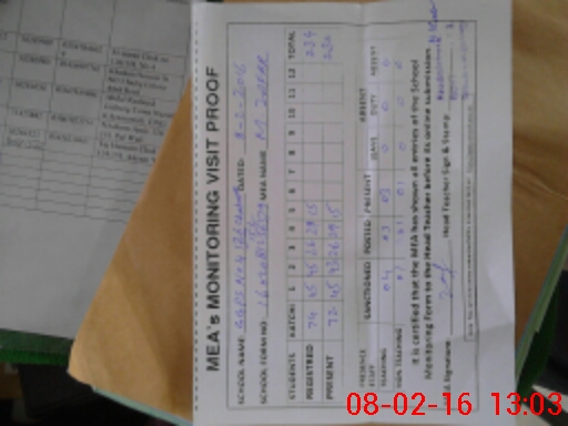 | Attendance Register | Head Teacher | MEA with School | Visit Proof |