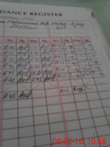 | CNIC | Full Name | Designation | R/C | Absence During Last Calender Month |