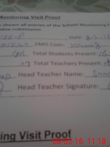 | Attendance Register | Head Teacher | MEA with School | Visit Proof |