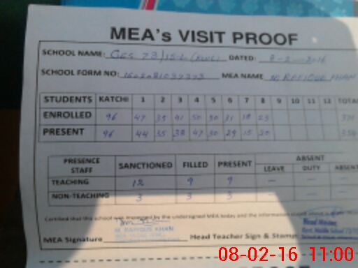 | Attendance Register | Head Teacher | MEA with School | Visit Proof |