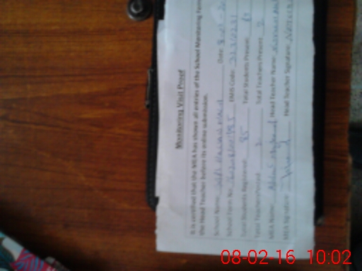 | Attendance Register | Head Teacher | MEA with School | Visit Proof |