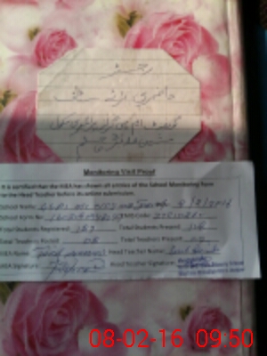 | Attendance Register | Head Teacher | MEA with School | Visit Proof |