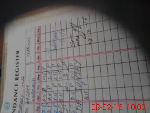| CNIC | Full Name | Designation | R/C | Absence During Last Calender Month |