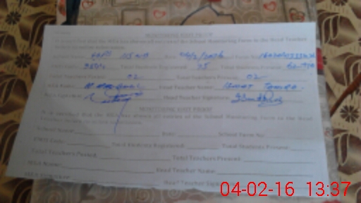 | Attendance Register | Head Teacher | MEA with School | Visit Proof |