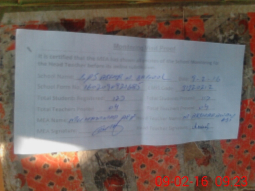 | Monitoring Date: 09-02-2016 | Start Time: 09-02-2016 09:11 AM | End Time: 09-02-2016 09:24 AM | Name of MEA: Mu**** Ar**** -LQ**** | |