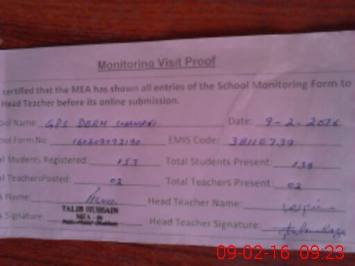 | EMIS Code: 38110739 | Name of School: GPS DERH SHAHANI | |||