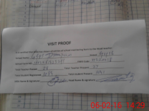 | Attendance Register | Head Teacher | MEA with School | Visit Proof |