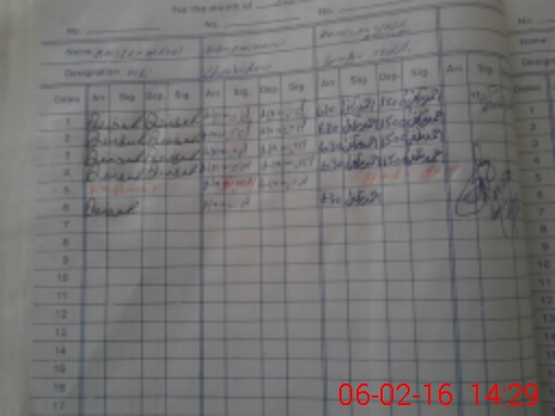 | CNIC | Full Name | Designation | R/C | Absence During Last Calender Month |