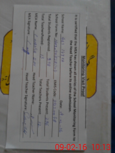 | Certified that this School was Inspected by the Undersigned MEA/DMO Today and the Information Stated Above is as Per Record. | |||||
