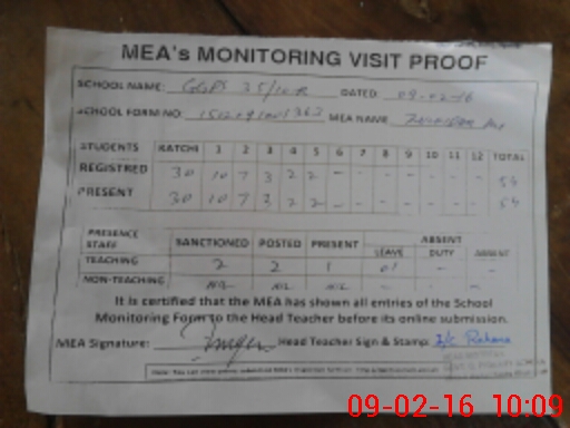 | Attendance Register | Head Teacher | MEA with School | Visit Proof |