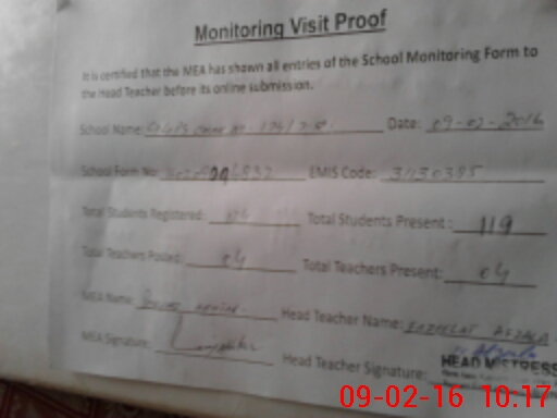 | Certified that this School was Inspected by the Undersigned MEA/DMO Today and the Information Stated Above is as Per Record. | |||||