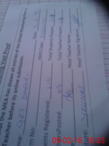 | Certified that this School was Inspected by the Undersigned MEA/DMO Today and the Information Stated Above is as Per Record. | |||||
