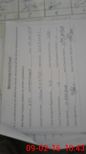 | Certified that this School was Inspected by the Undersigned MEA/DMO Today and the Information Stated Above is as Per Record. | |||||