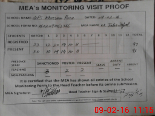 | Attendance Register | Head Teacher | MEA with School | Visit Proof |