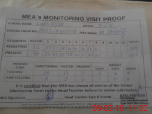 | Certified that this School was Inspected by the Undersigned MEA/DMO Today and the Information Stated Above is as Per Record. | |||||
