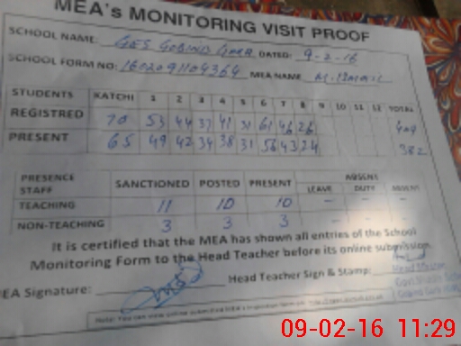 | Certified that this School was Inspected by the Undersigned MEA/DMO Today and the Information Stated Above is as Per Record. | |||||