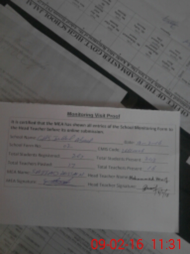| Attendance Register | Head Teacher | MEA with School | Visit Proof |