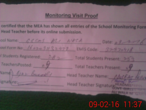 | EMIS Code: 32330418 | Name of School: GGCMS ALI WALA | |||