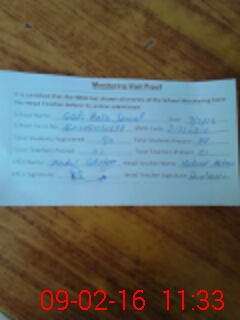 | Attendance Register | Head Teacher | MEA with School | Visit Proof |