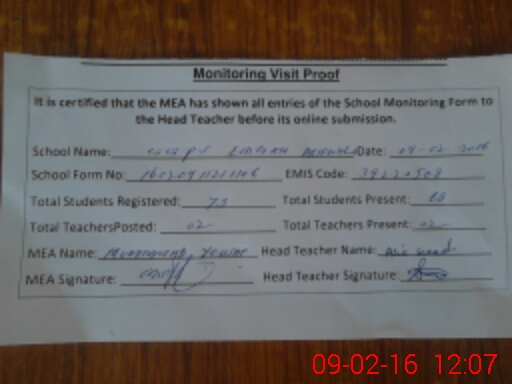 | Certified that this School was Inspected by the Undersigned MEA/DMO Today and the Information Stated Above is as Per Record. | |||||
