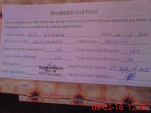 | EMIS Code: 38110119 | Name of School: GPS GHILKAN | |||