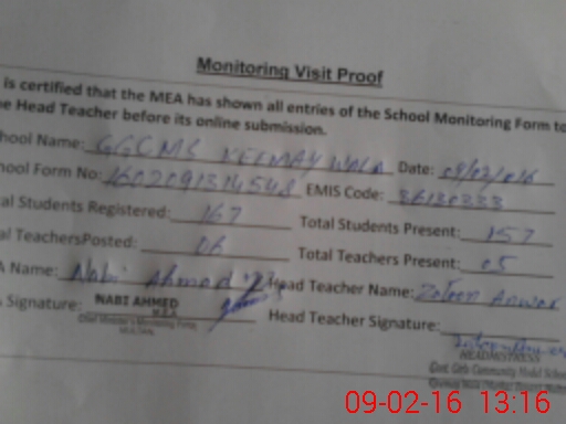 | Certified that this School was Inspected by the Undersigned MEA/DMO Today and the Information Stated Above is as Per Record. | |||||