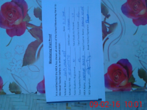 | Remarks (Use Separate Page if Required): NEW SCHOOL BUILDING CONTAINING TWO CLASS ROOMS IS UNDER CONSTRUCTION CURRENTLY SCHOOL IS RUNNING IN A PRIVATE HOUSE SCHOOL HEALTH NUTRITION SUPERVISOR VISIT NIL FTF COLLECTION NIL | |||||