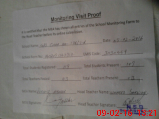 | Certified that this School was Inspected by the Undersigned MEA/DMO Today and the Information Stated Above is as Per Record. | |||||