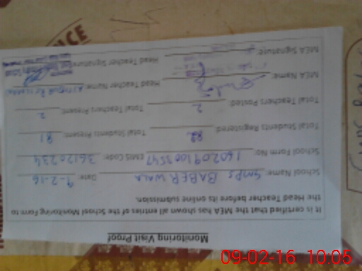 | Certified that this School was Inspected by the Undersigned MEA/DMO Today and the Information Stated Above is as Per Record. | |||||