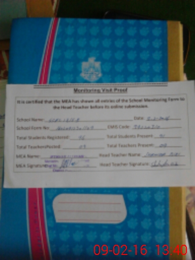 | Attendance Register | Head Teacher | MEA with School | Visit Proof |