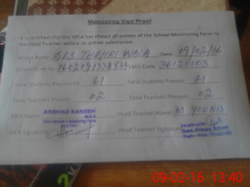 | EMIS Code: 36120103 | Name of School: GPS THEHRI WALA P/O LASURI MOZA PUNJANI | |||