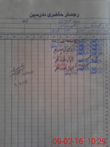 | CNIC | Full Name | Designation | R/C | Absence During Last Calender Month |