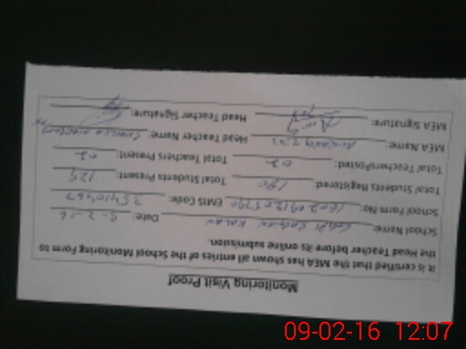 | Attendance Register | Head Teacher | MEA with School | Visit Proof |
