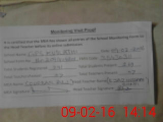 | Attendance Register | Head Teacher | MEA with School | Visit Proof |