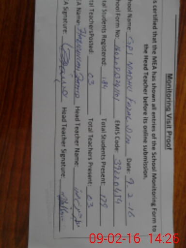 | Certified that this School was Inspected by the Undersigned MEA/DMO Today and the Information Stated Above is as Per Record. | |||||