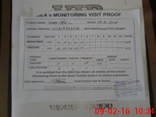 | Attendance Register | Head Teacher | MEA with School | Visit Proof |