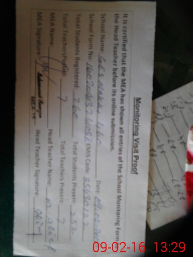 | Certified that this School was Inspected by the Undersigned MEA/DMO Today and the Information Stated Above is as Per Record. | |||||