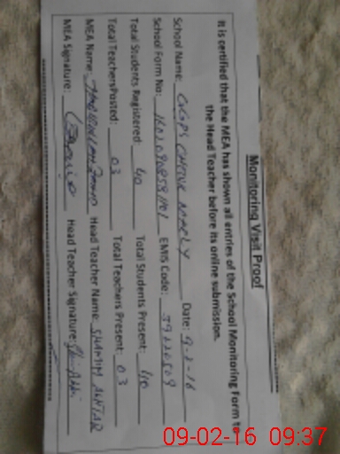 | Certified that this School was Inspected by the Undersigned MEA/DMO Today and the Information Stated Above is as Per Record. | |||||