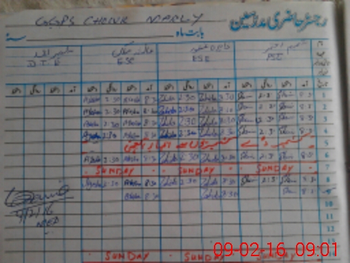 | CNIC | Full Name | Designation | R/C | Absence During Last Calender Month |