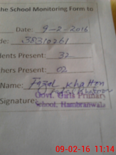 | EMIS Code: 38310261 | Name of School: GGPS HANBRAN WALA | |||