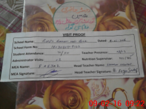 | Attendance Register | Head Teacher | MEA with School | Visit Proof |