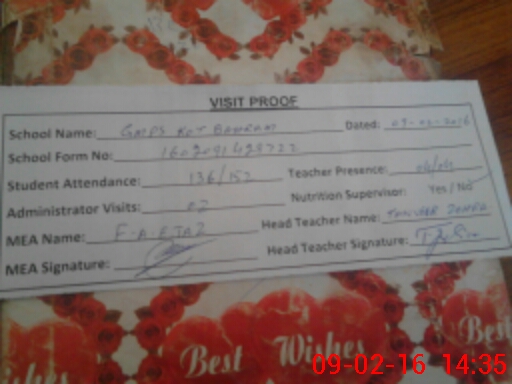 | Attendance Register | Head Teacher | MEA with School | Visit Proof |