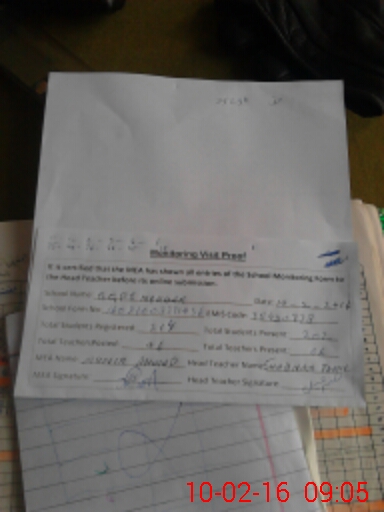 | Attendance Register | Head Teacher | MEA with School | Visit Proof |